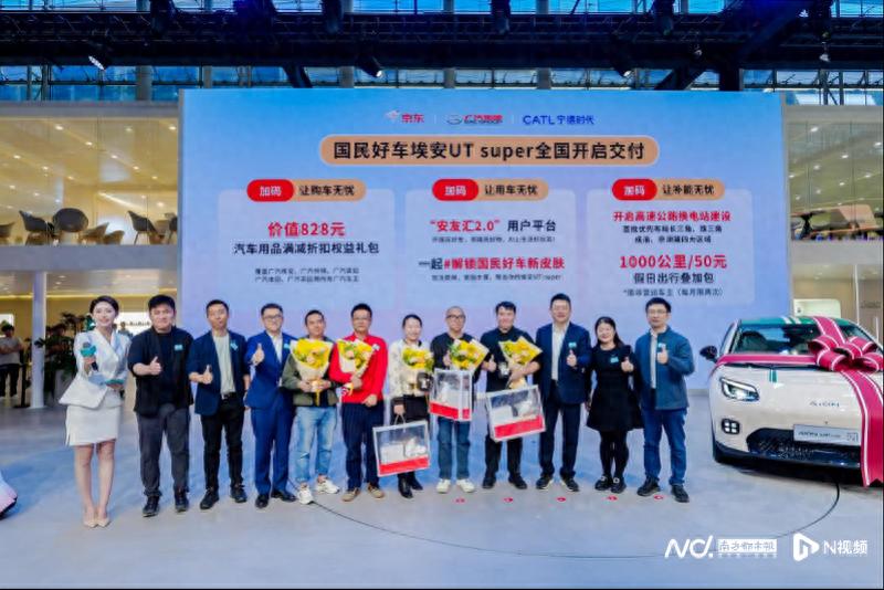 11月25日,在2025广州国际车展上,由京东、广汽集团与宁德时代三方共同推出的“国民好车”埃安UT super举行首批车主交付仪式,宣布新车开启尾款支付,并正式进入全面交付阶段。